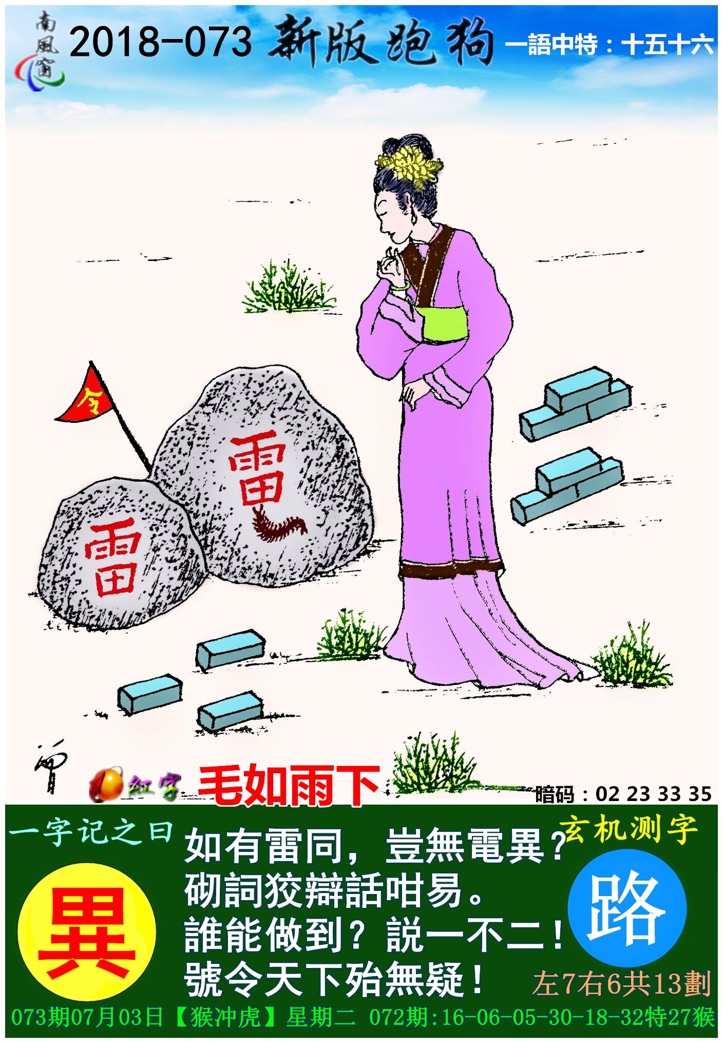 073期:新版跑狗一字記之曰【異】玄機測字《路》