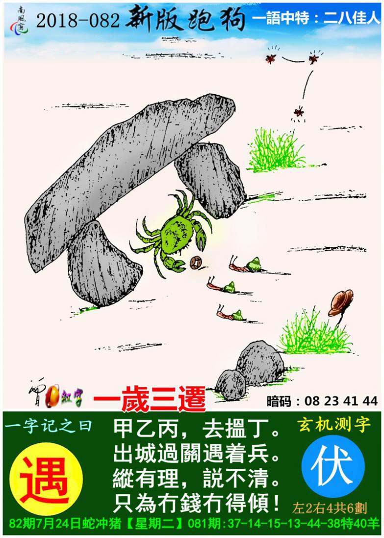 082期:新版跑狗一字記之曰【遇】玄機測字《伏》