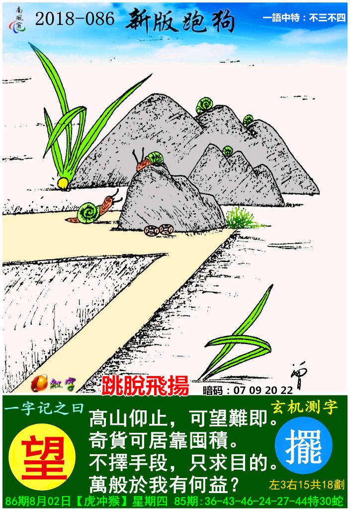 主题 : 086期:新版跑狗一字記之曰【望】玄機測字《擺》