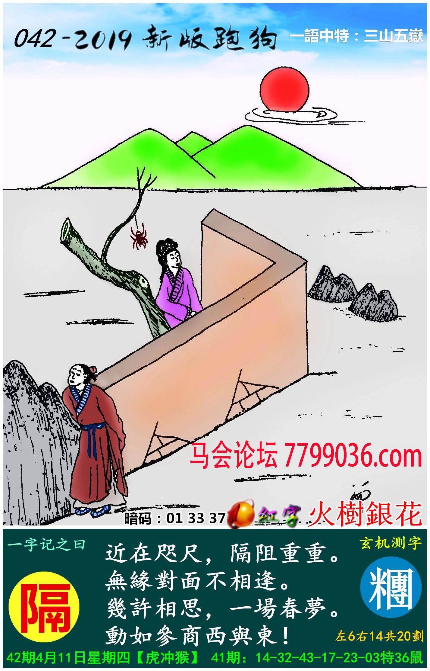 042期新版跑狗一字記之曰:【隔】