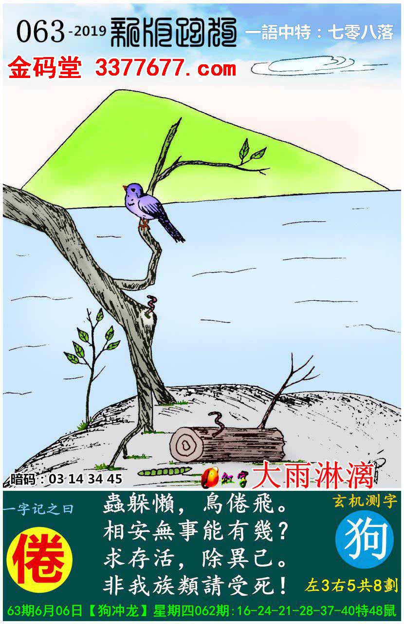 063期新版跑狗一字記之曰:【倦】