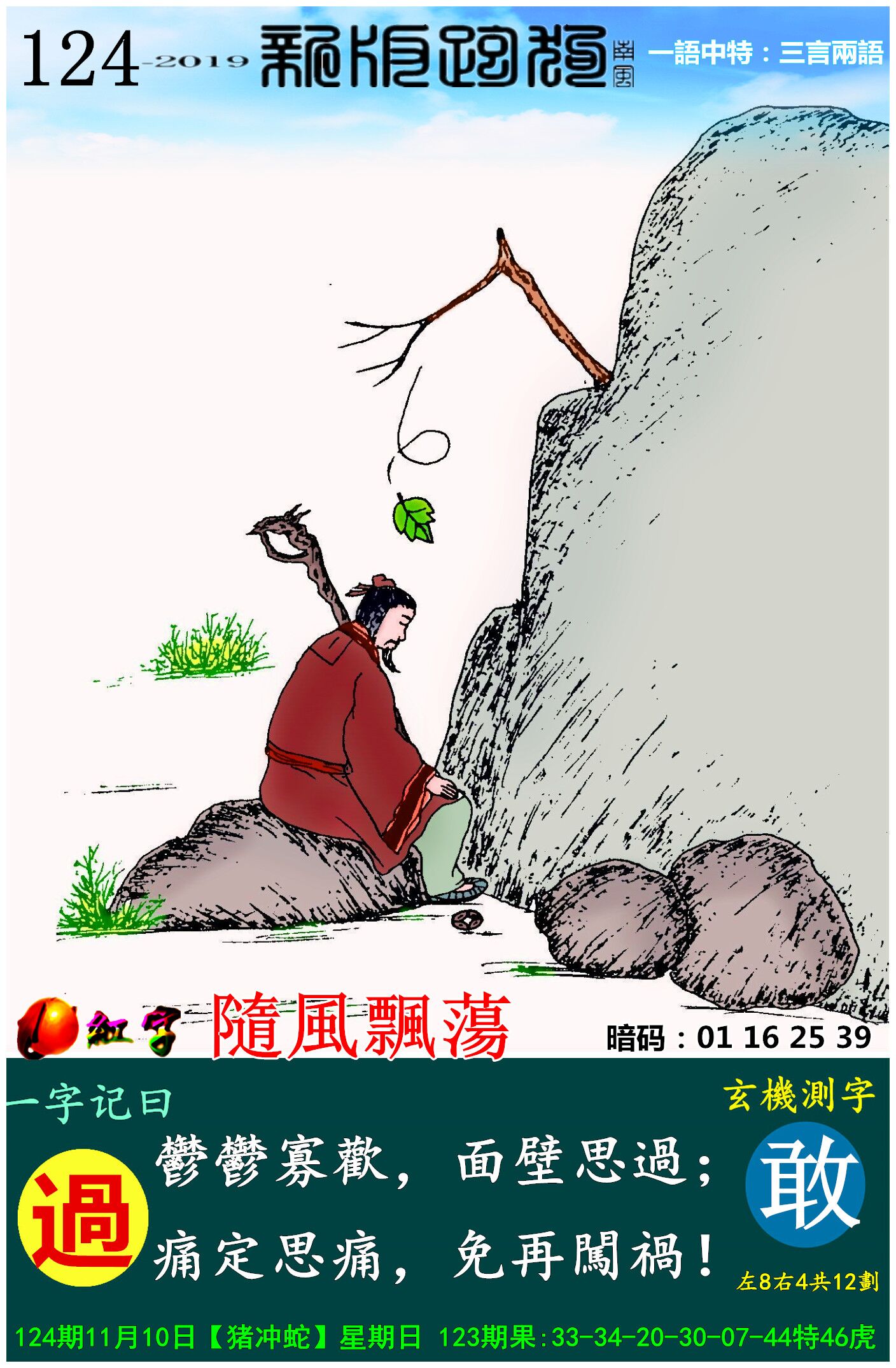 主题 : 124期:新版跑狗一字記之曰【過】玄機測字:《敢 》