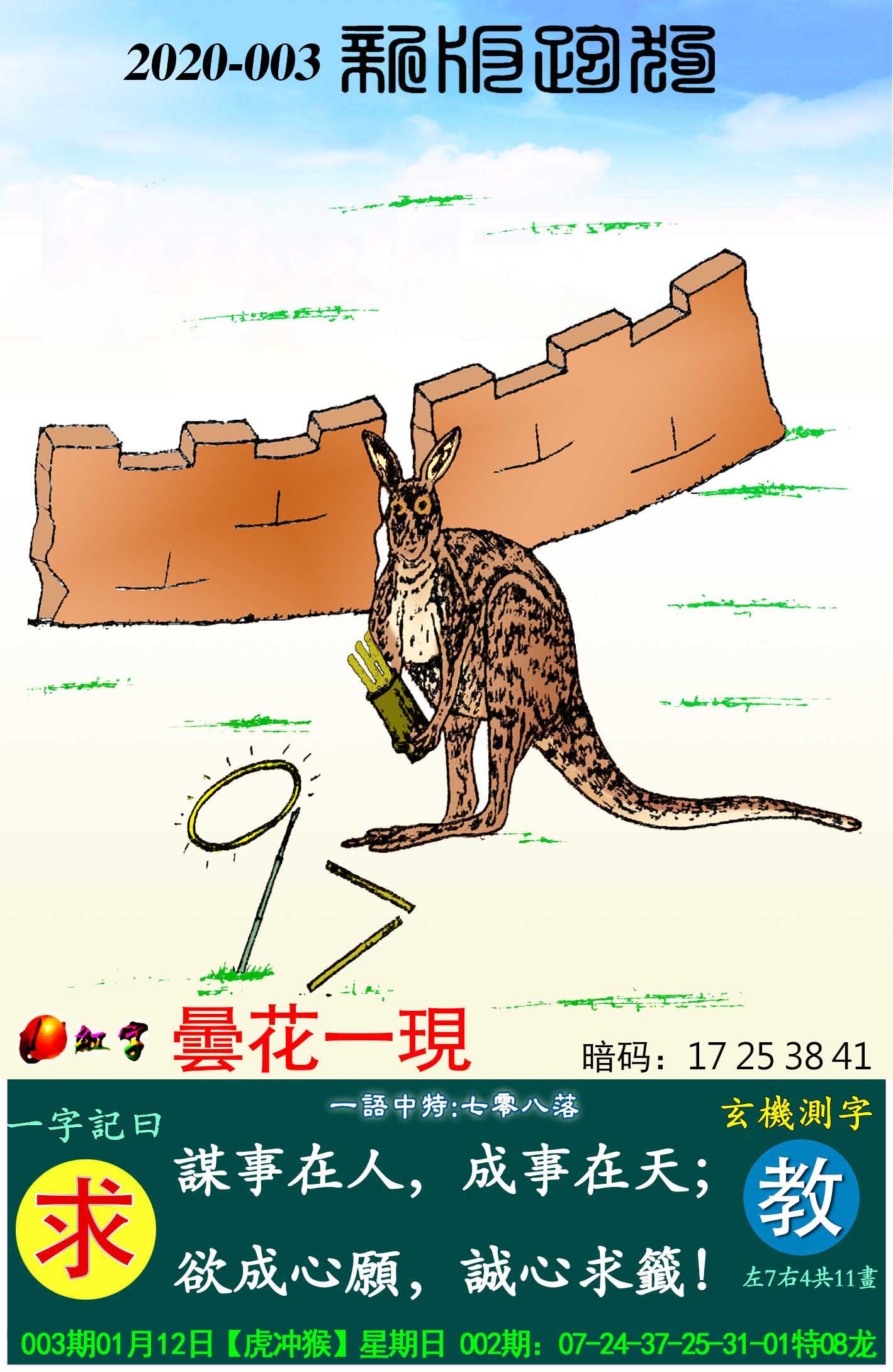 003期:新版跑狗一字記之曰【求】玄機測字:《教》