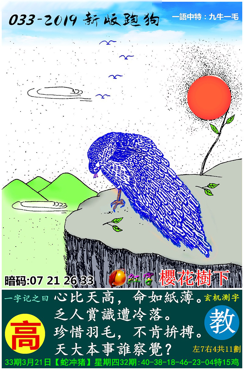 023期:新版跑狗一字記之曰【傲】玄機測字:《以》