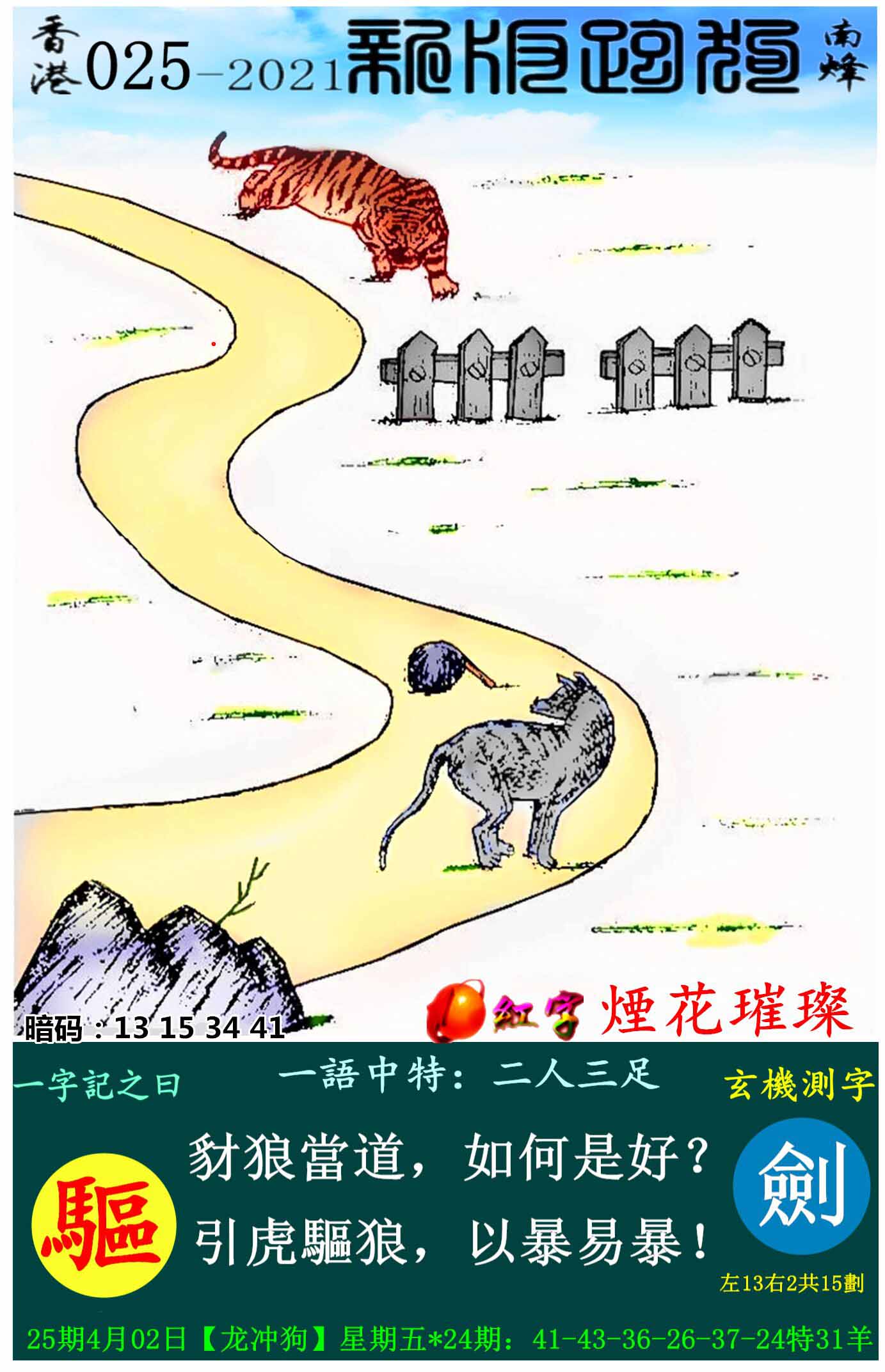 025期:新版跑狗一字記之曰【驅】玄機測字:《劍》