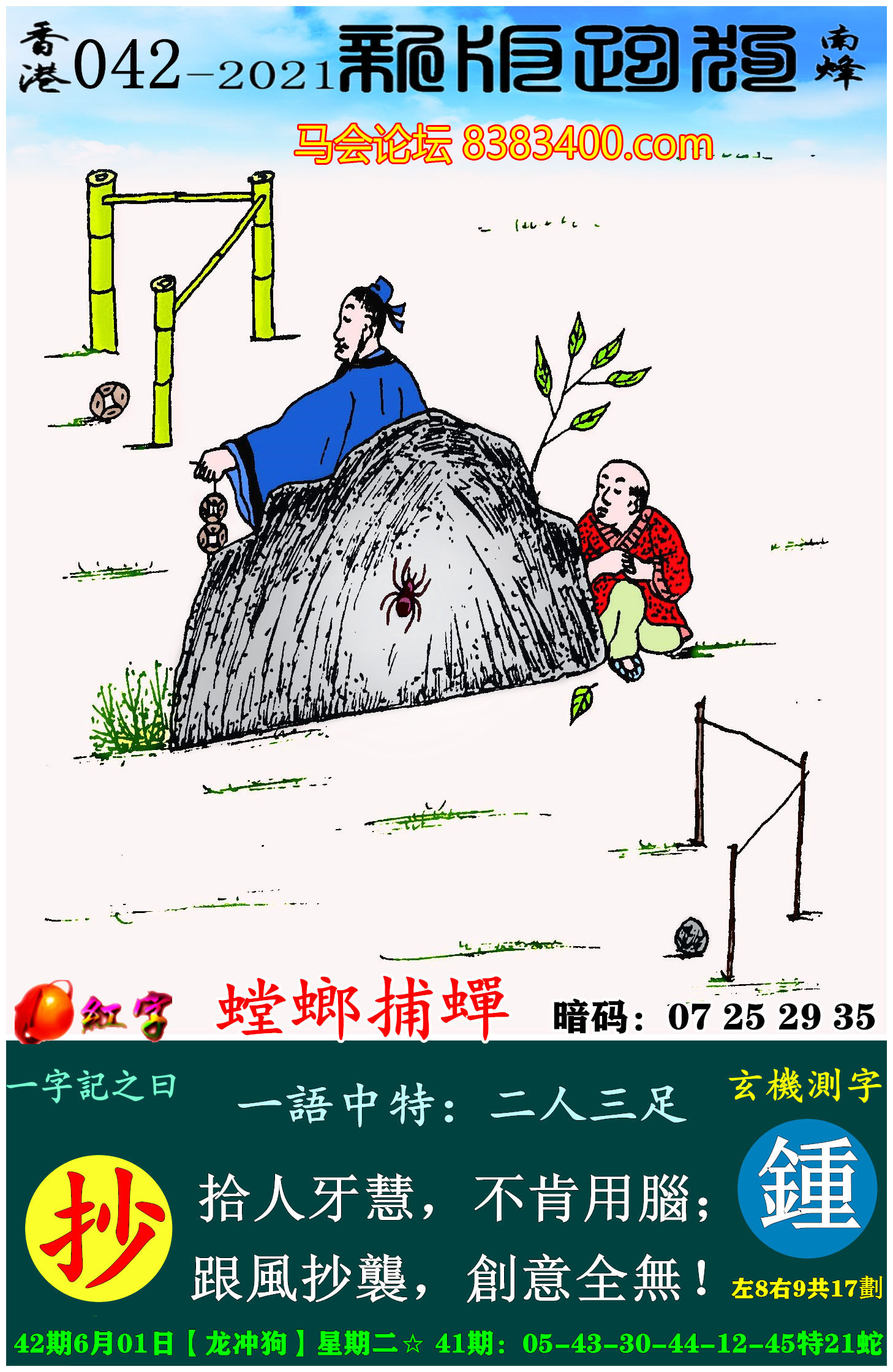042期:新版跑狗一字記之曰【抄】玄機測字:《鍾》
