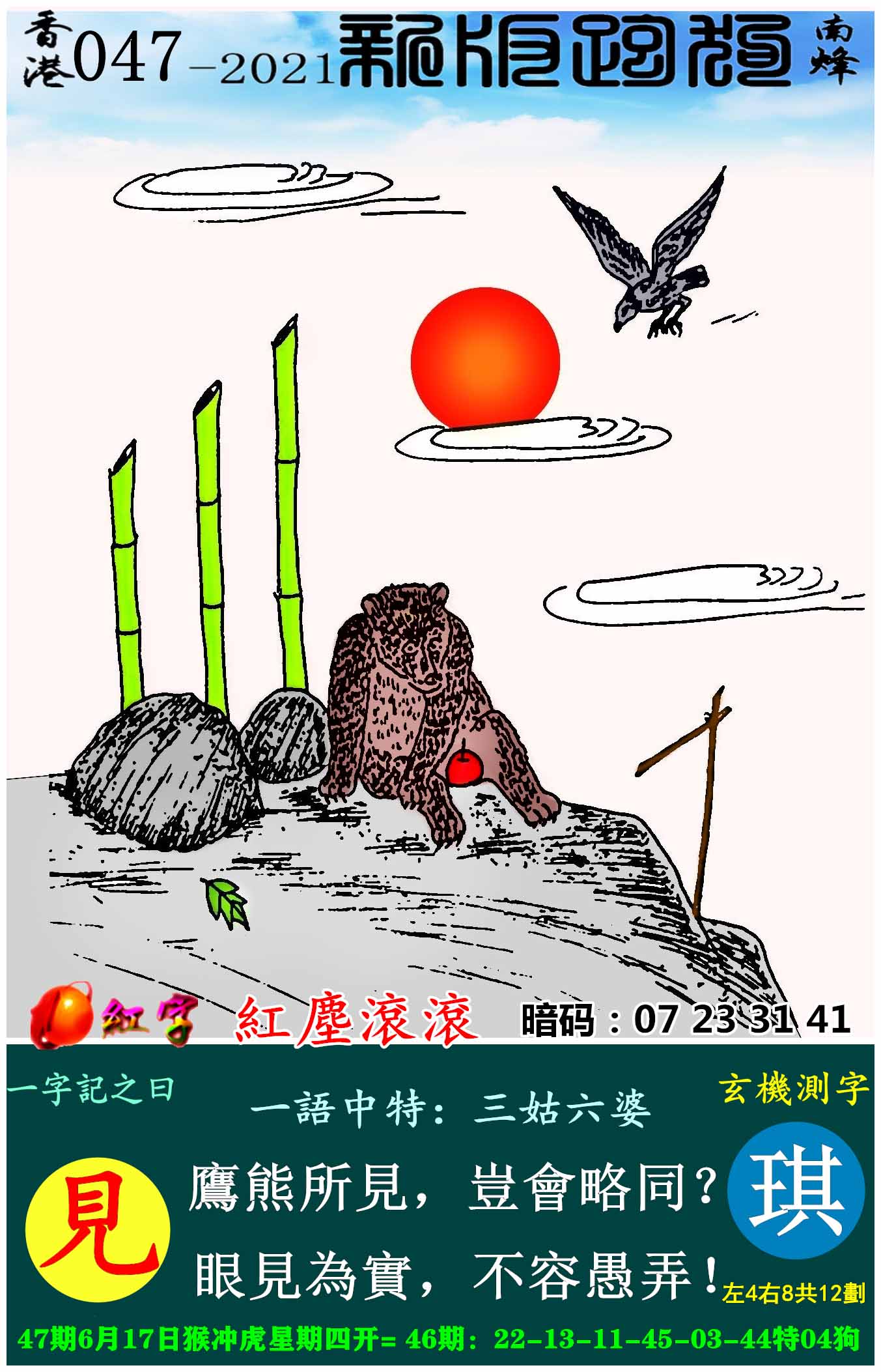 主题 : 047期:新版跑狗一字記之曰【見】玄機測字:《琪》