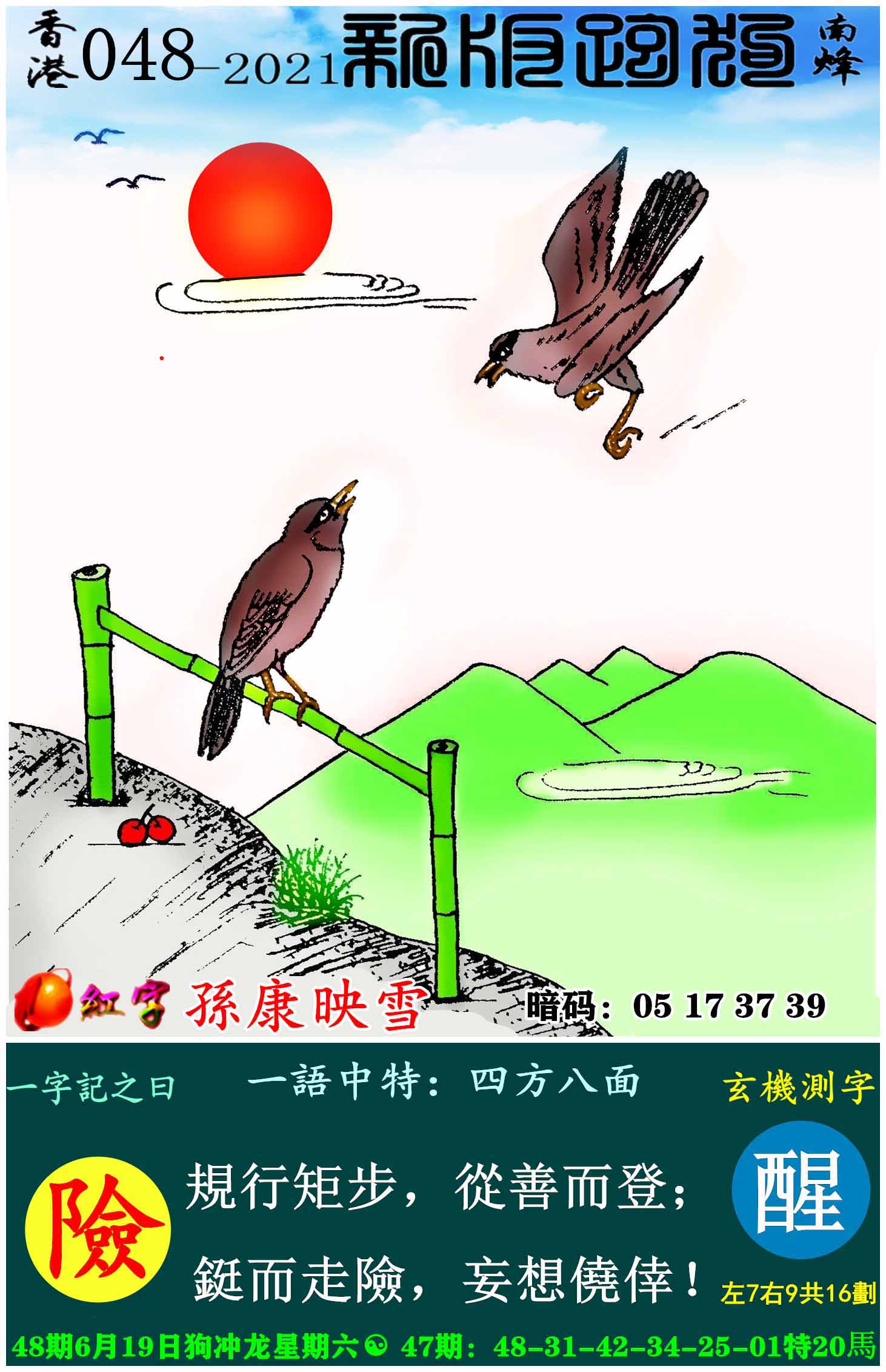 主题 : 048期:新版跑狗一字記之曰【險】玄機測字:《醒》