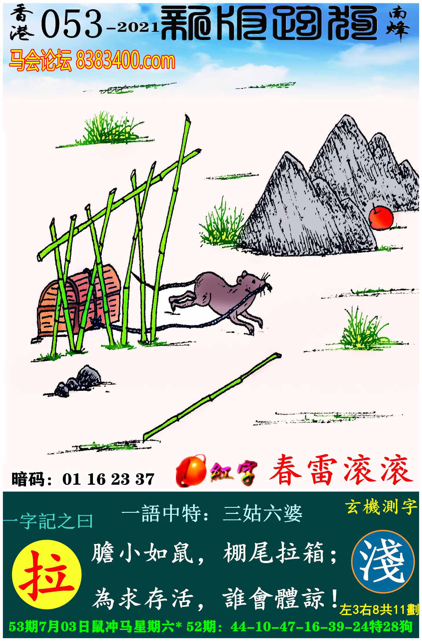 053期新版跑狗一字記之曰:【拉】