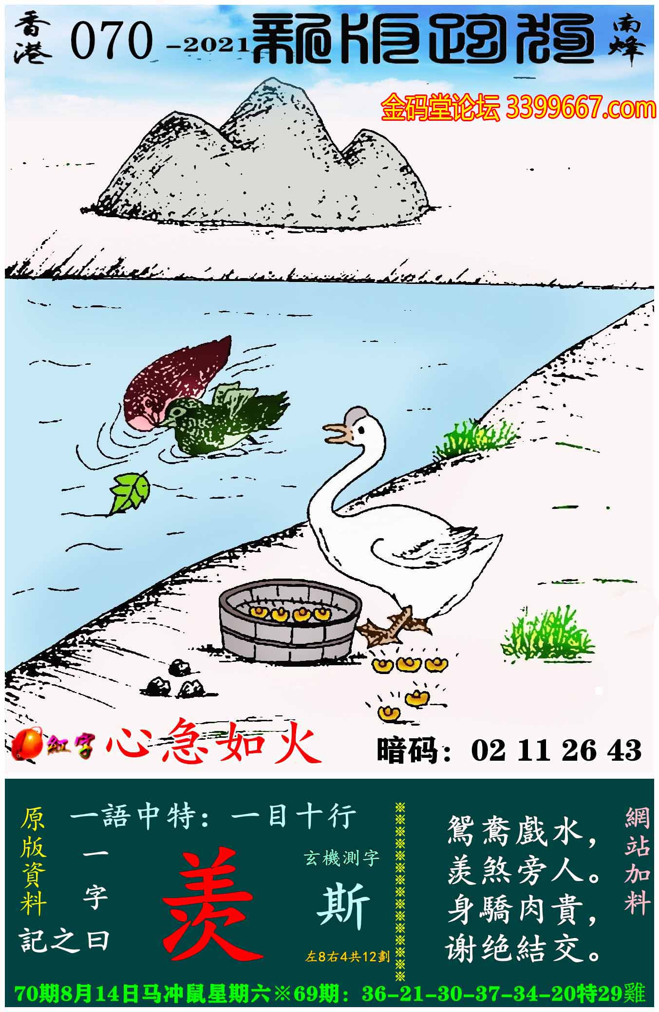 主题 : 070期:新版跑狗一字記之曰【羡】玄機測字:《斯》