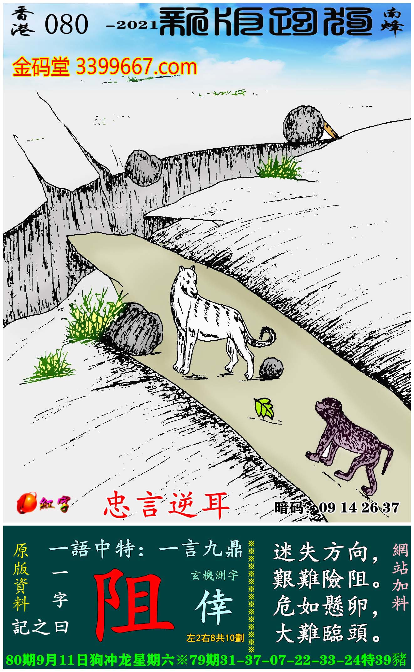 080期新版跑狗一字記之曰:【阻】
