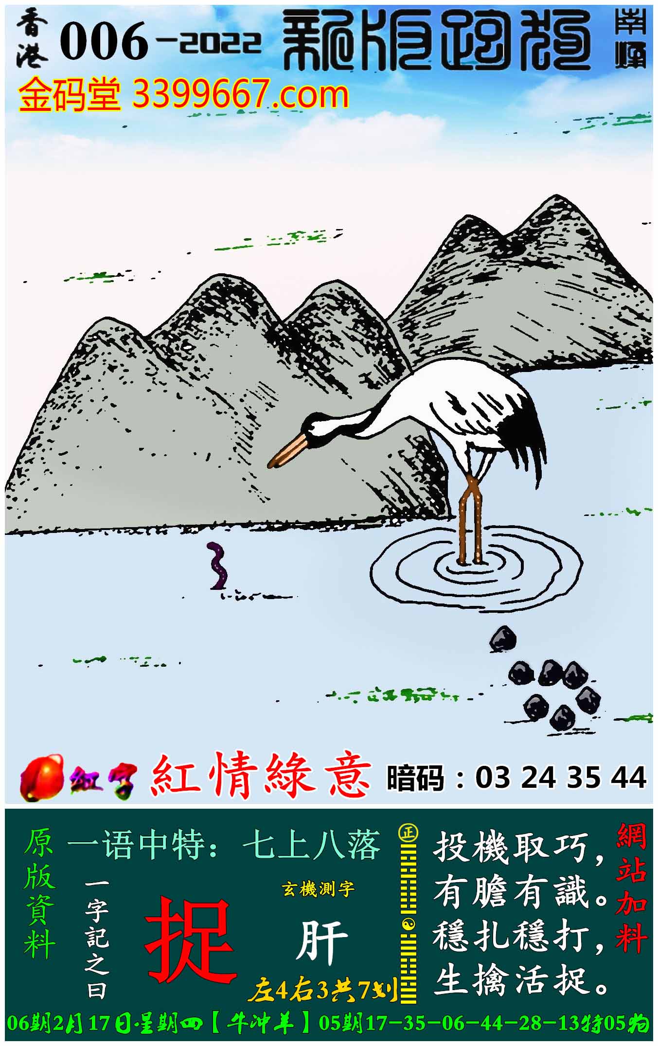 006期:新版跑狗一字記之曰【捉】玄機測字:《肝》