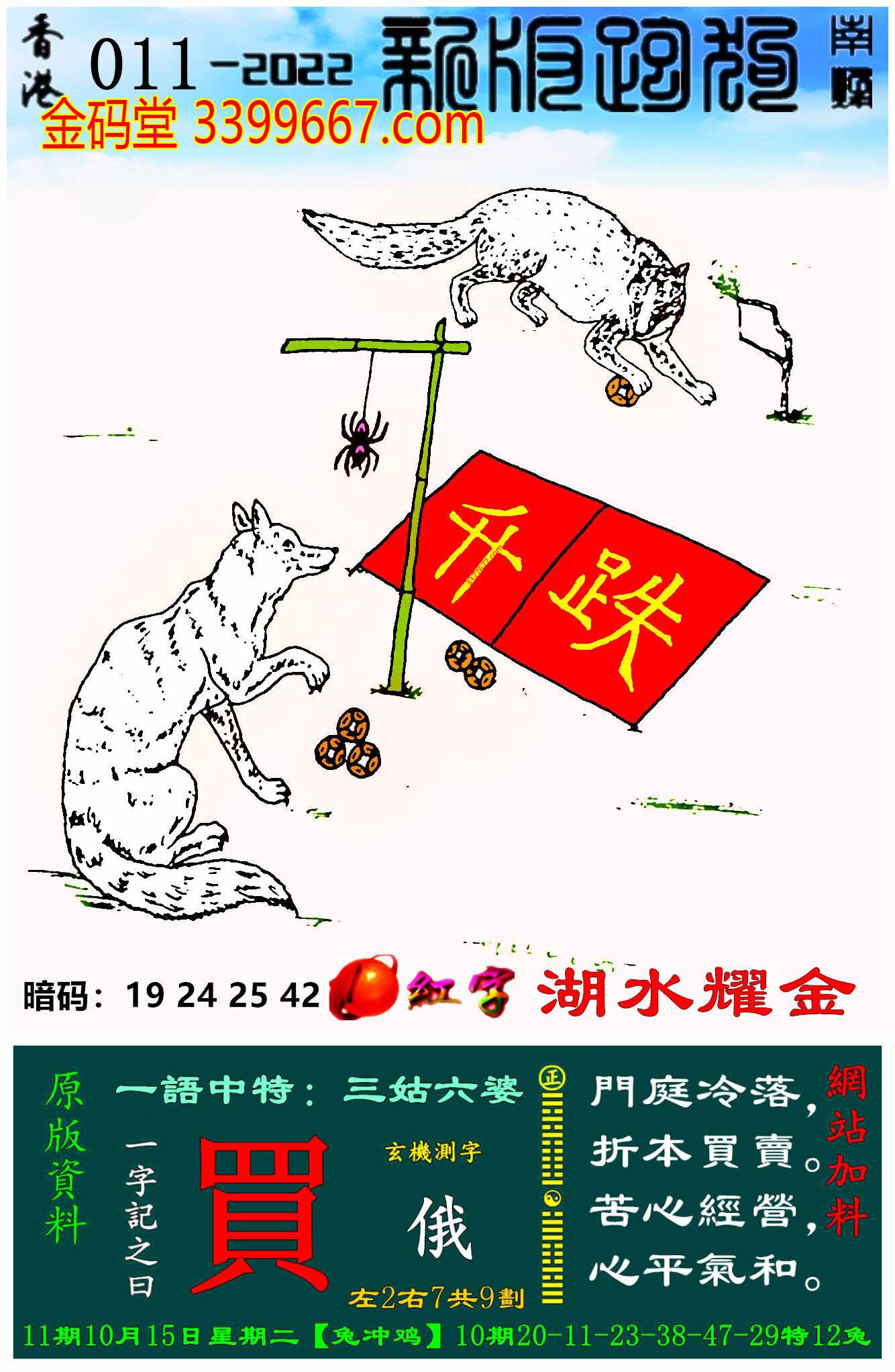 011期新版跑狗一字記之曰:【買】