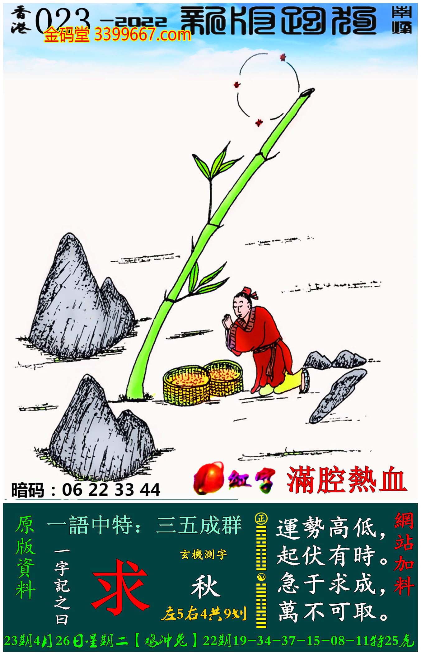 主题 : 023期:新版跑狗一字記之曰【求】玄機測字:《秋》