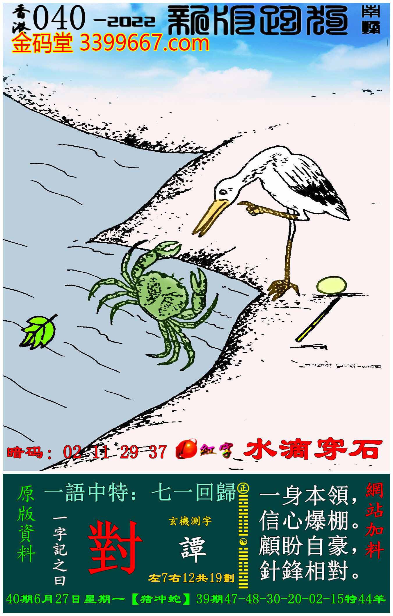 主题 : 040期:新版跑狗一字記之曰【對】玄機測字:《譚》