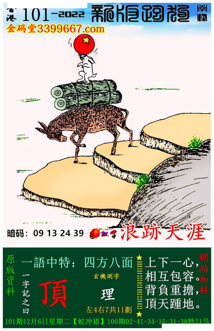 101期:新版跑狗一字記之曰【頂】玄機測字:《理》