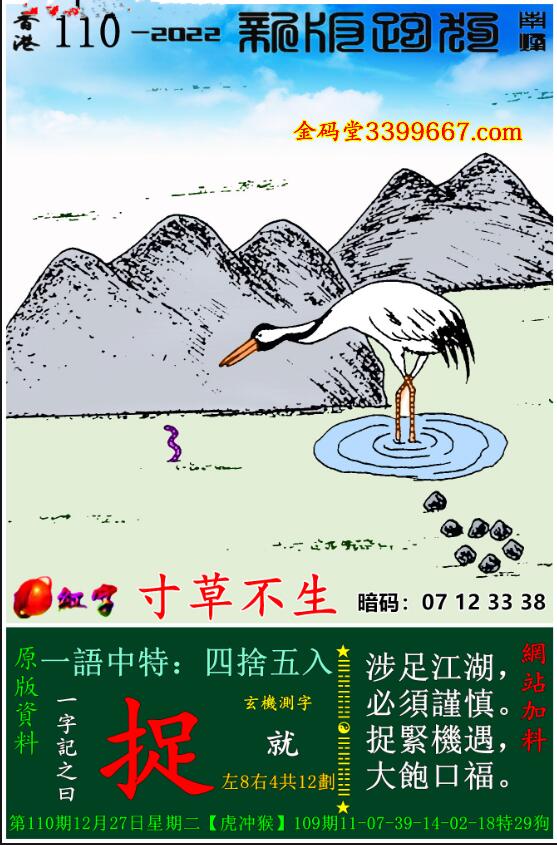 主题 : 110期:新版跑狗一字記之曰【捉】玄機測字:《就》