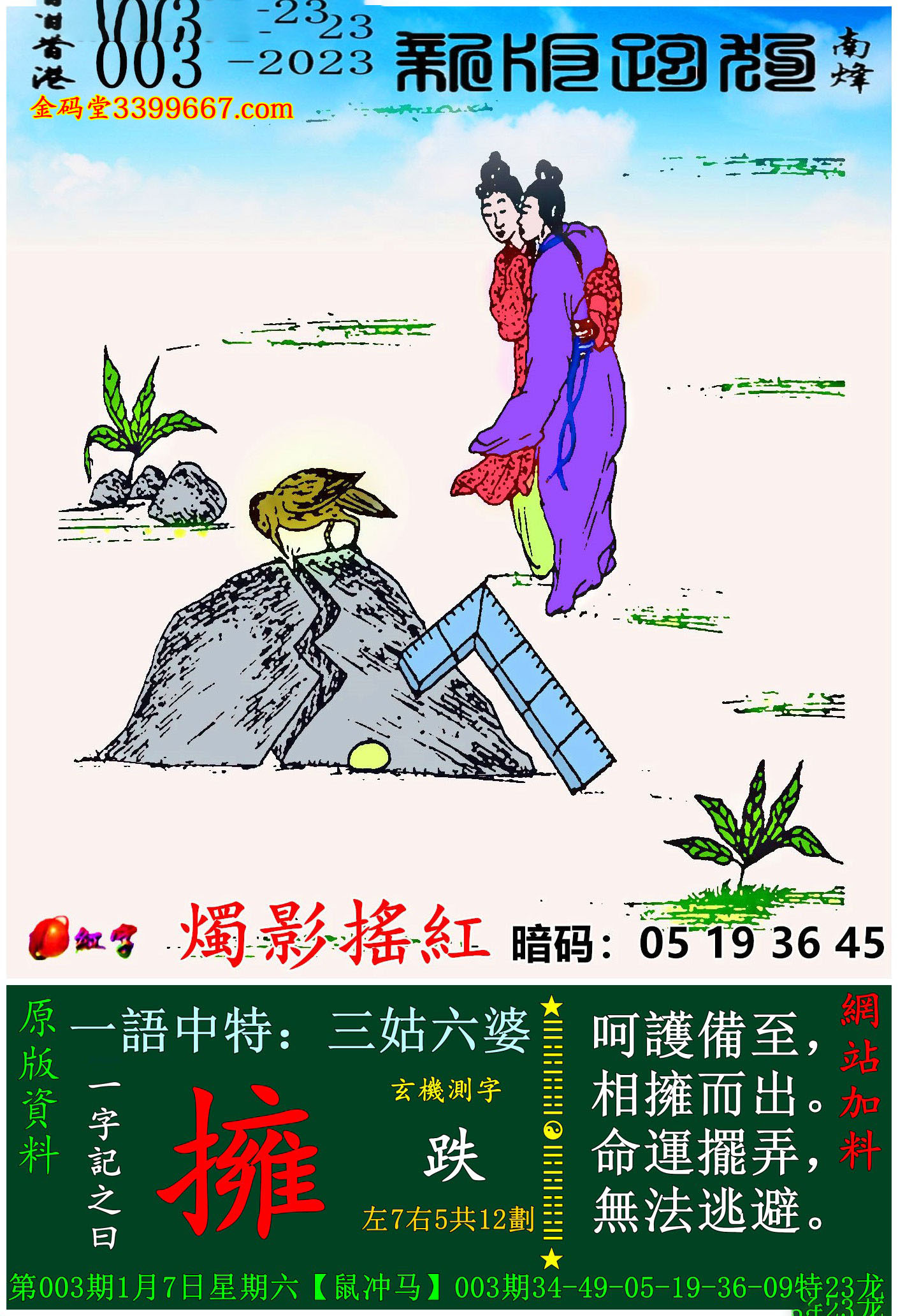 003期新版跑狗一字記之曰:【擁】