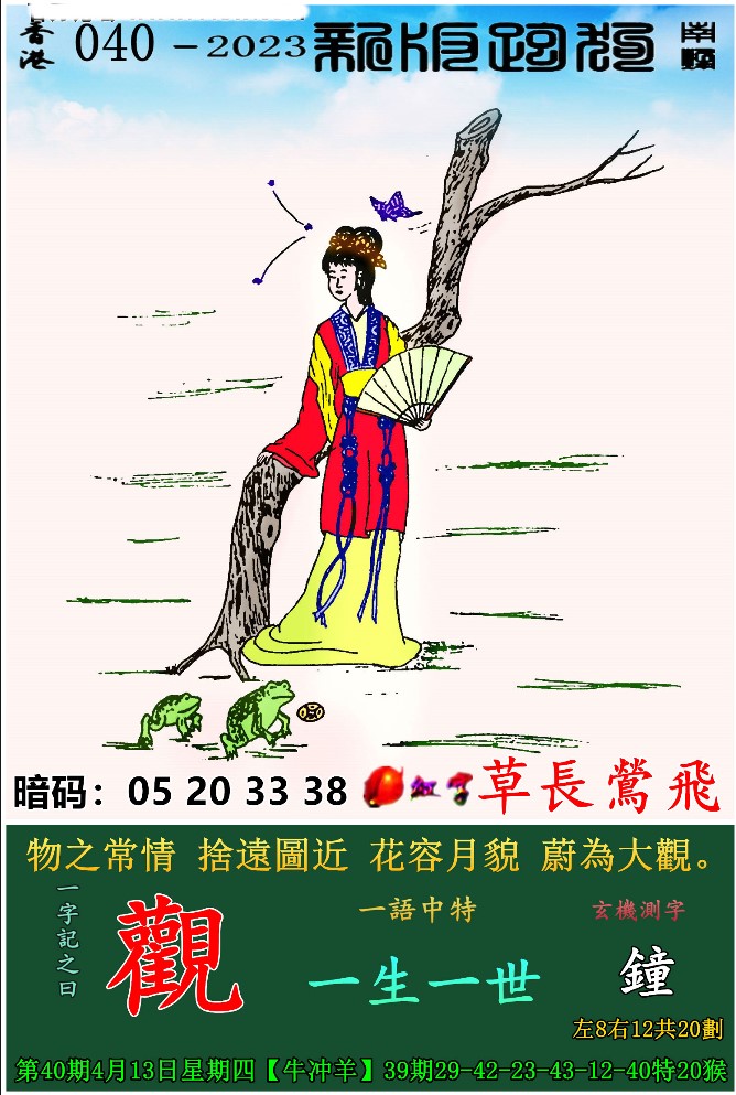040期:新版跑狗一字記之曰【觀】 玄機測字:《鐘》
