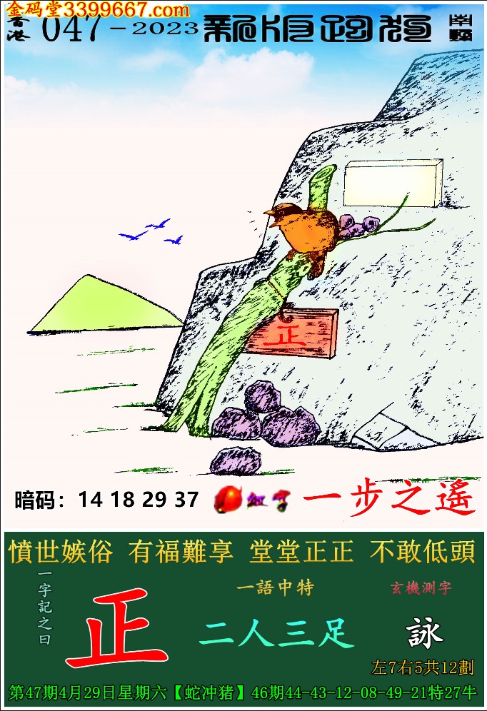 047期:新版跑狗一字記之曰【正】 玄機測字:《詠》