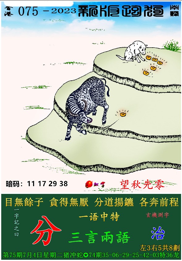 075期新版跑狗一字記之曰:【分】