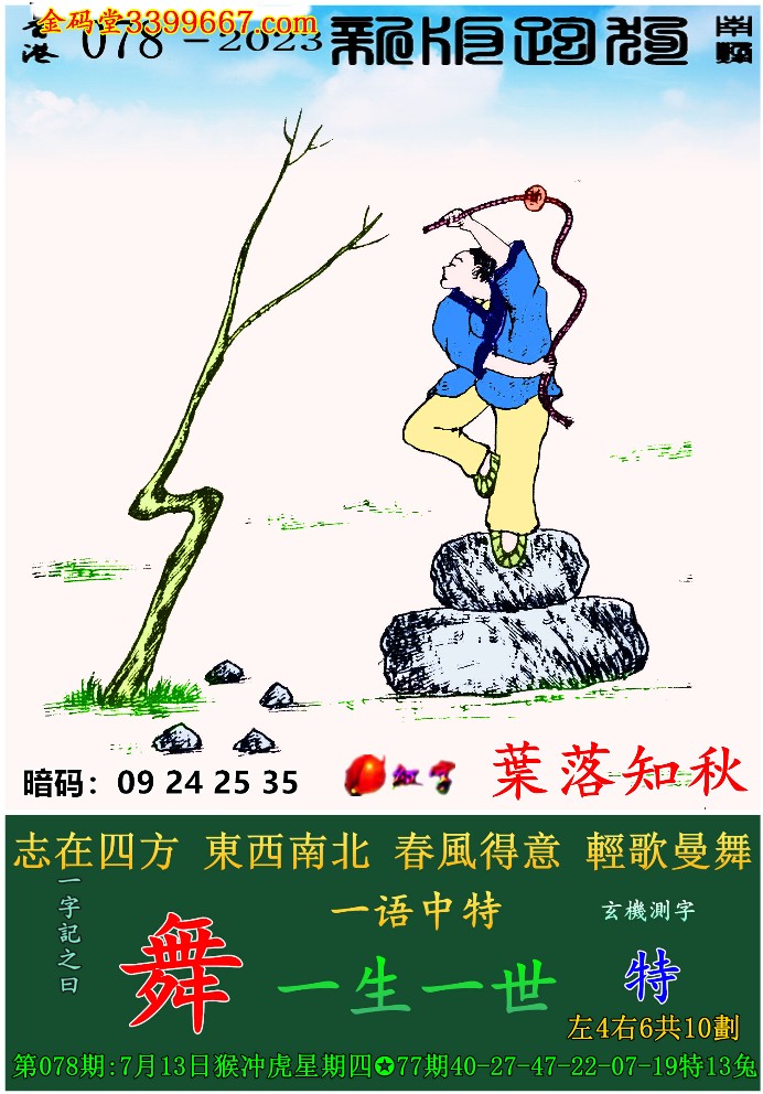 078期:新版跑狗一字記之曰【舞】 玄機測字:《特》