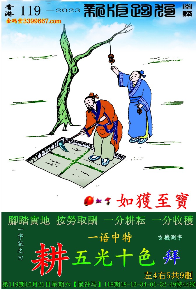 119期:新版跑狗一字記之曰【耕】 玄機測字:《拜》
