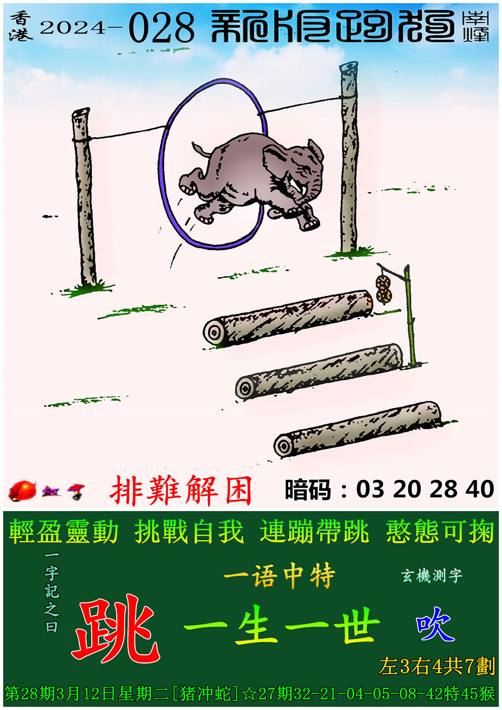 028期:新版跑狗一字記之曰【跳】 玄機測字:【吹】
