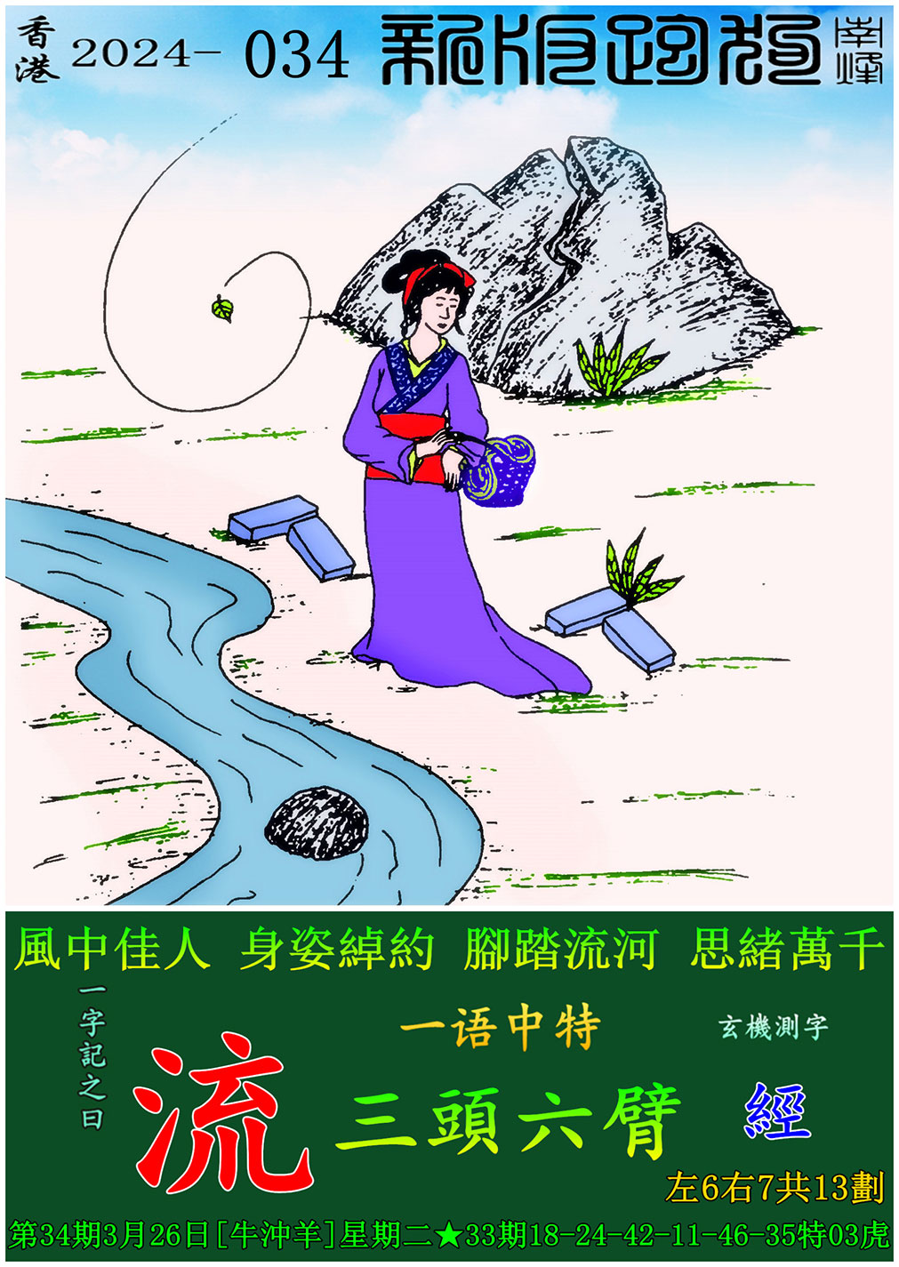 034期:新版跑狗一字記之曰【流】 玄機測字:【經】