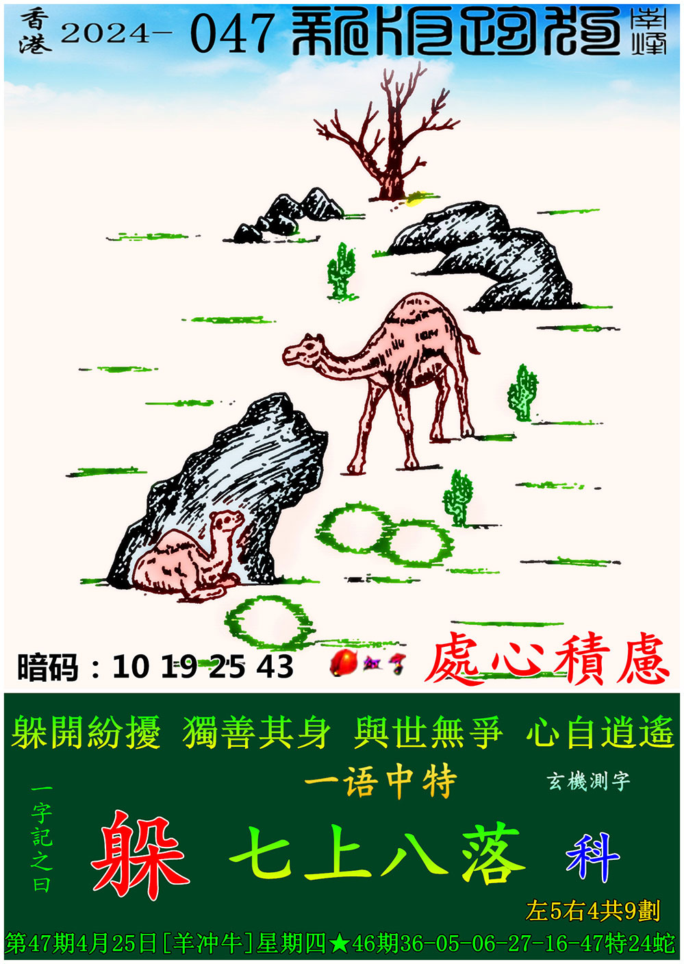 047期:新版跑狗一字記之曰【躲】 玄機測字:【科】