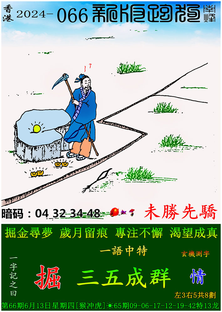 066期:新版跑狗一字記之曰【掘】 玄機測字:【情】