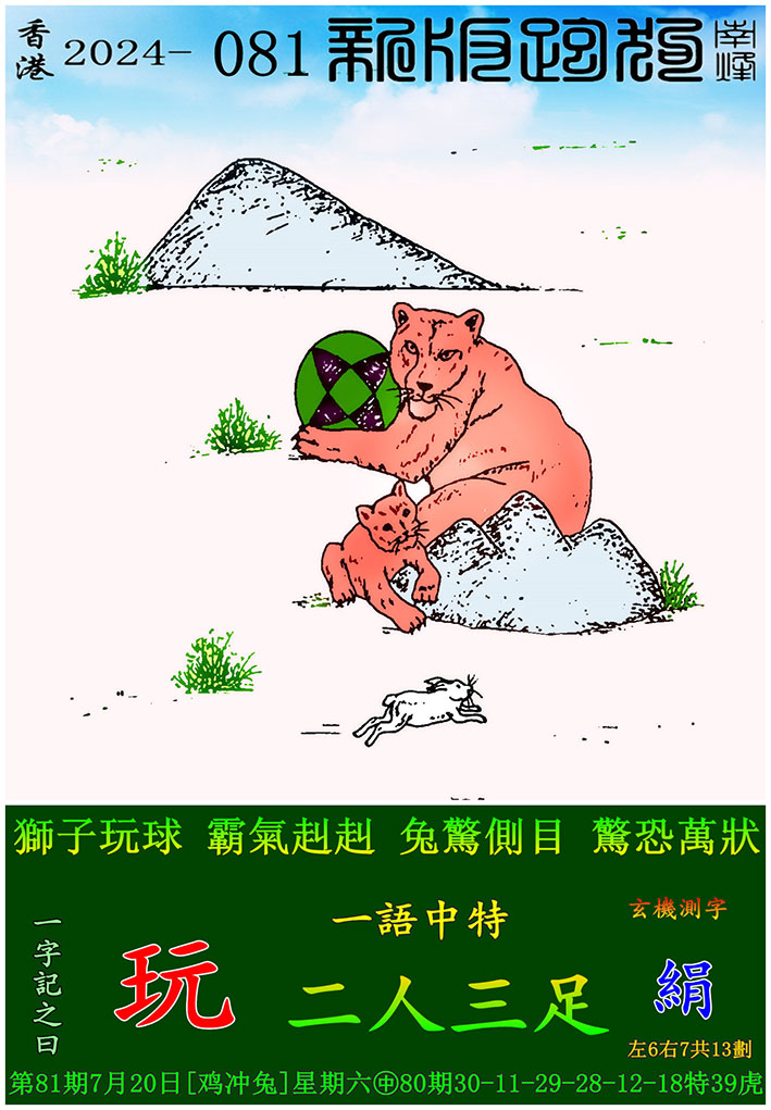 081期:新版跑狗一字記之曰【玩】 玄機測字:【絹】