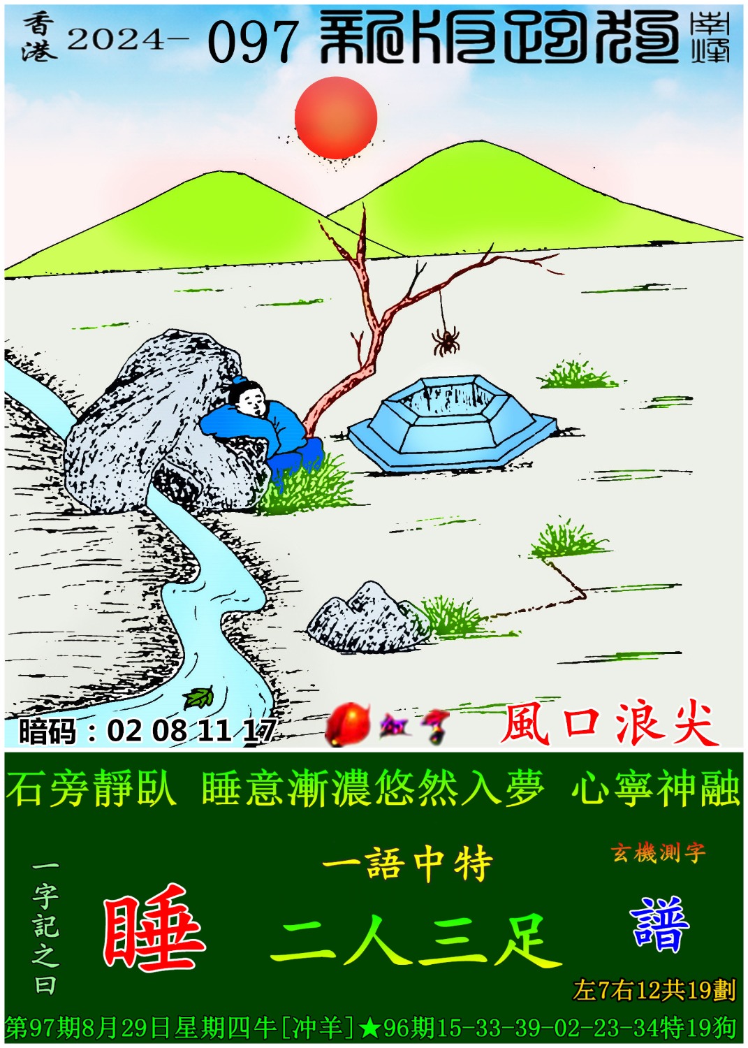 097期新版跑狗一字記之曰:【睡】