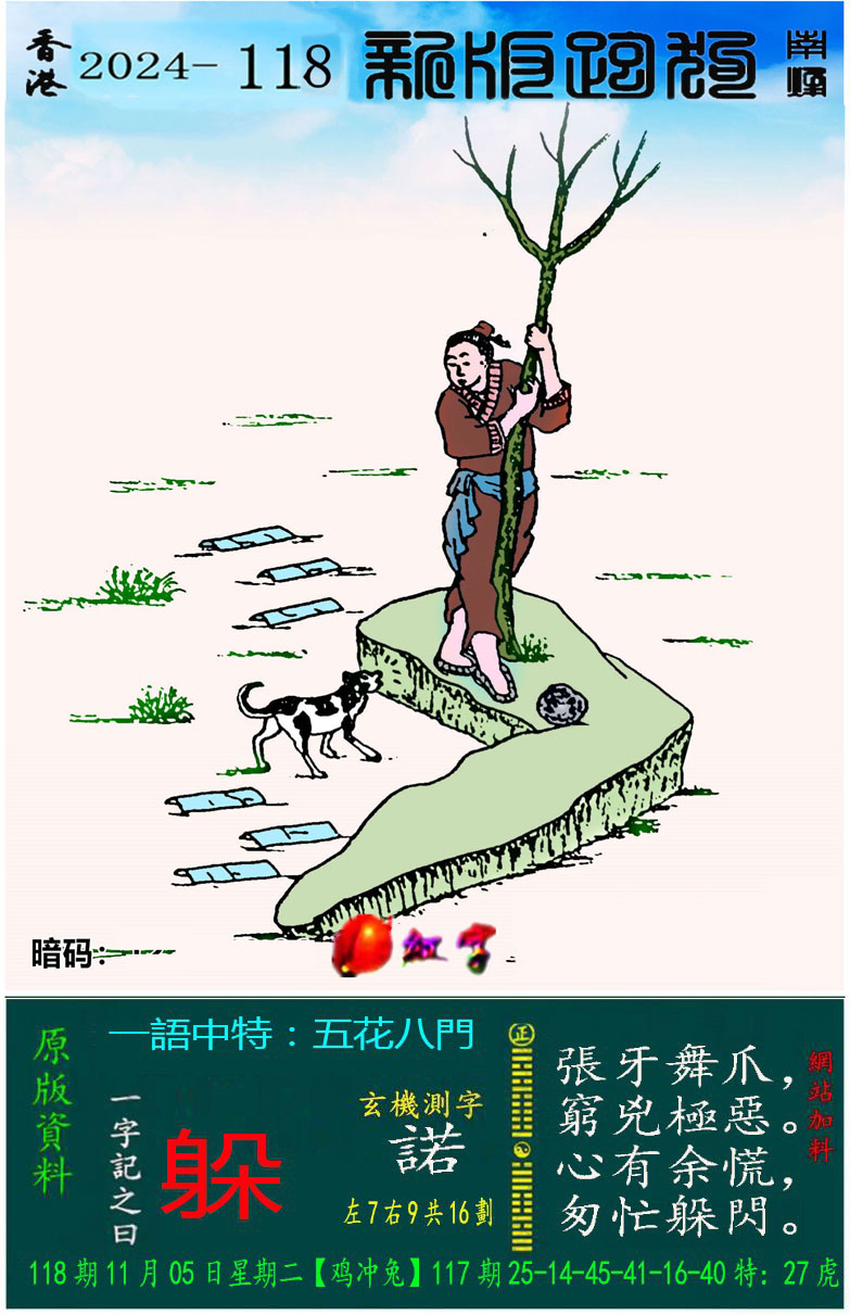 118期:新版跑狗一字記之曰【躲】 玄機測字:【諾】