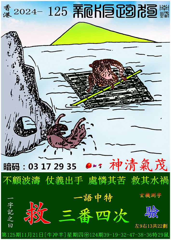 125期:新版跑狗一字記之曰【救】 玄機測字:【驗】