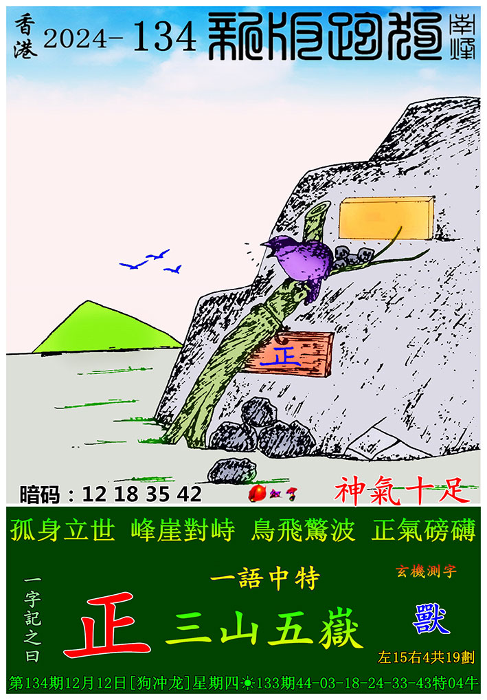 134期新版跑狗一字記之曰:【正】