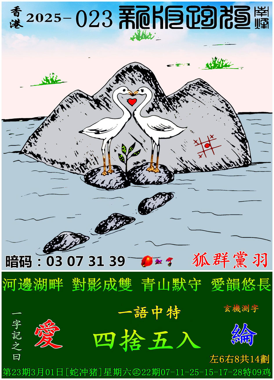 023期新版跑狗一字記之曰:【愛】