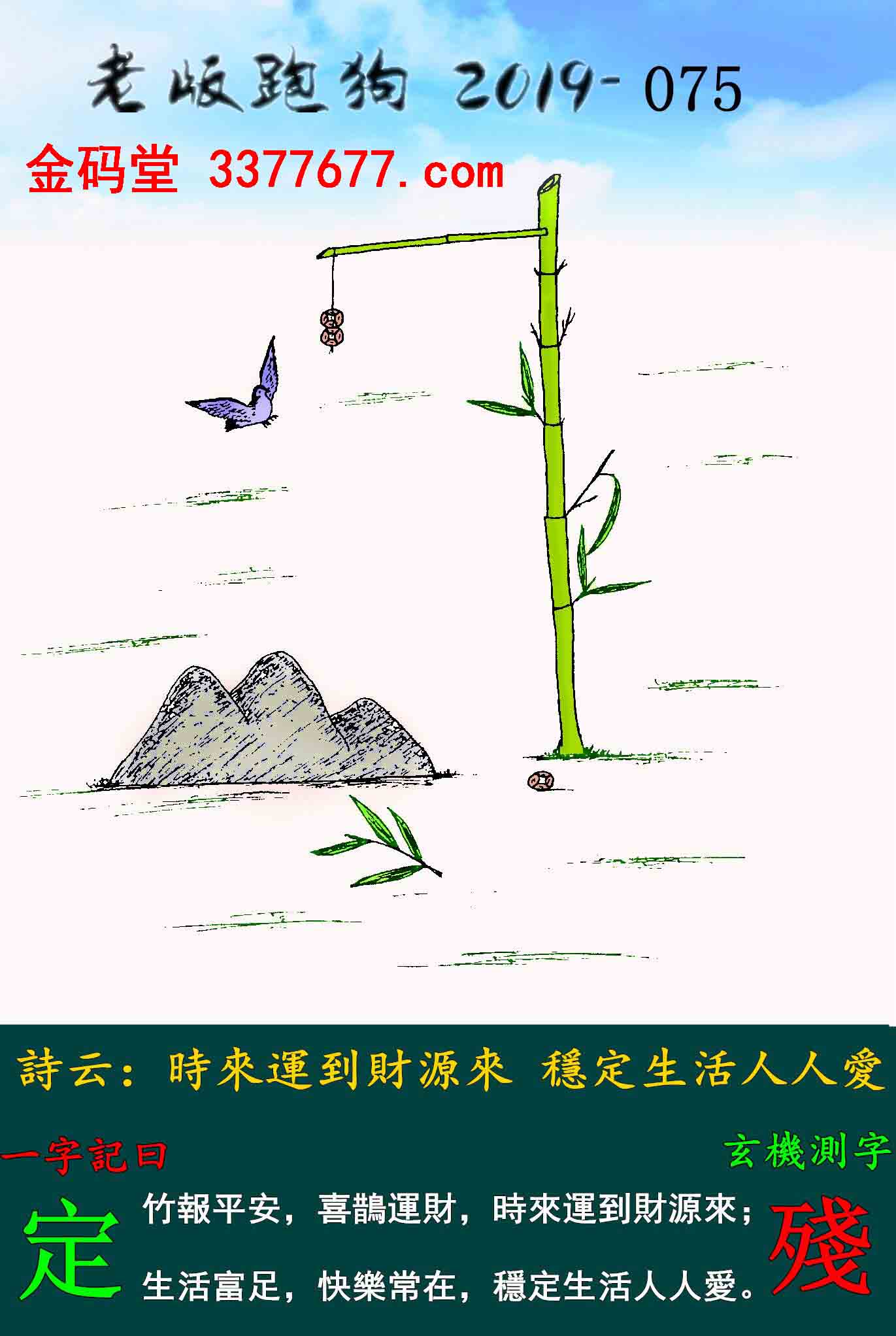 主题 : 075期:老版跑狗一字記之曰【定】玄機測字《殘》