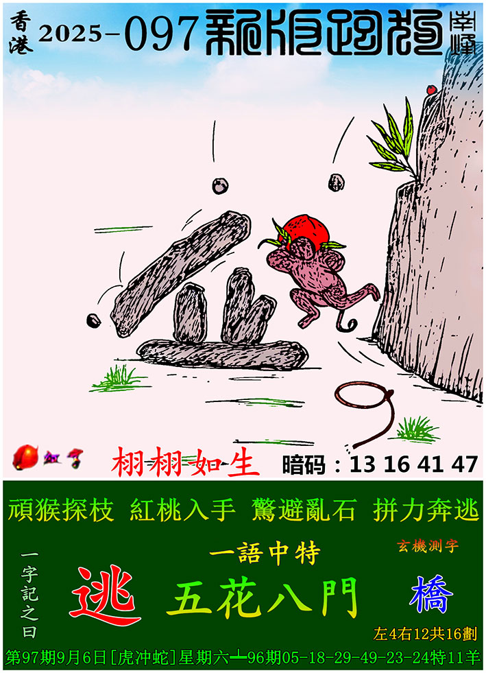 097期:新版跑狗一字記之曰【逃】 玄機測字:【橋】