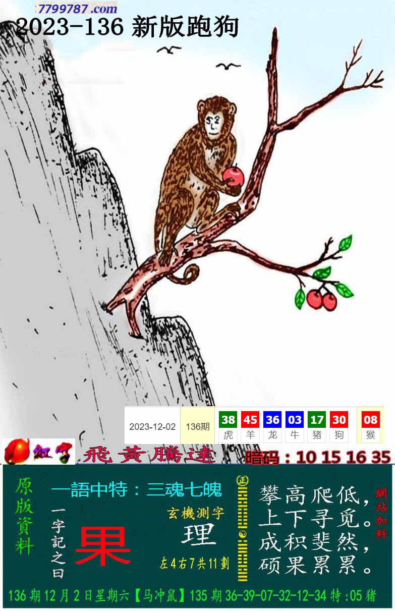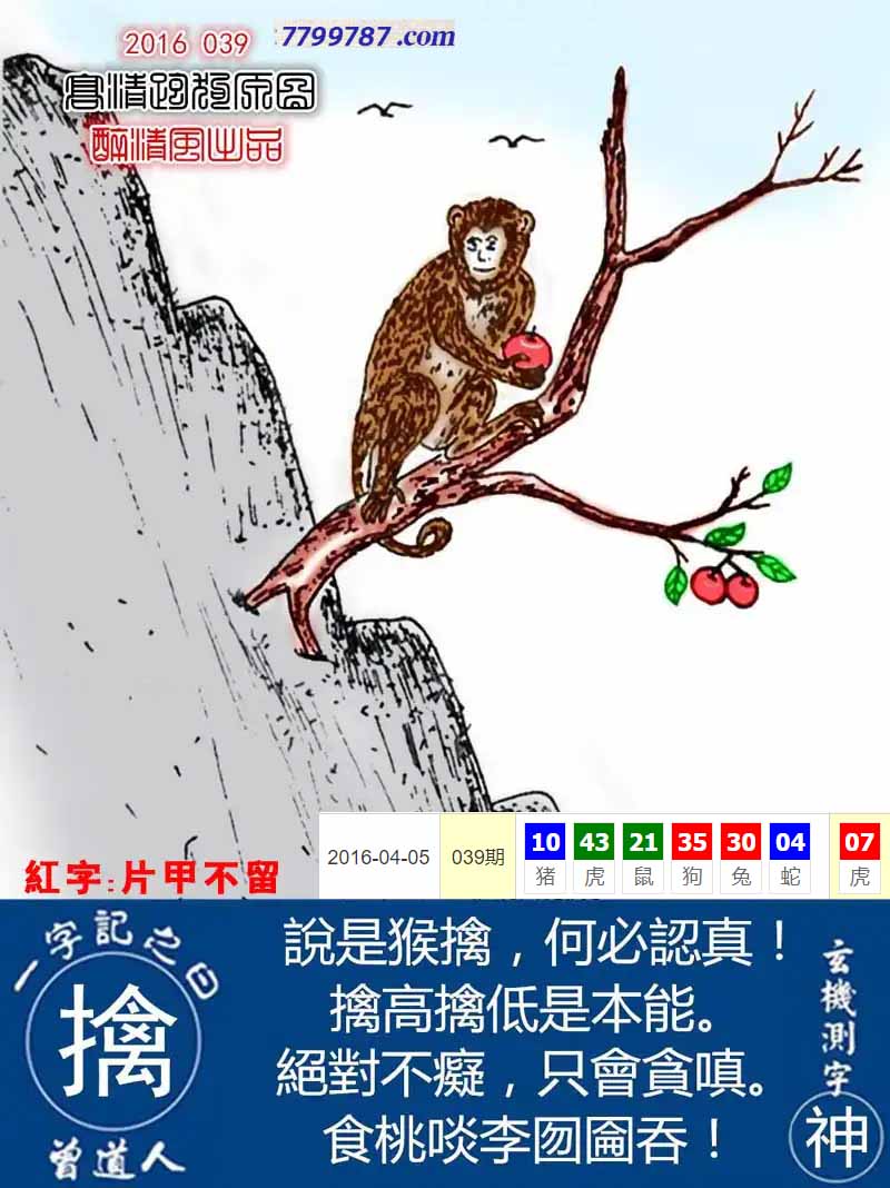 主题 : 114期:新版跑狗一字記之曰【摘】 玄機測字:【俊】