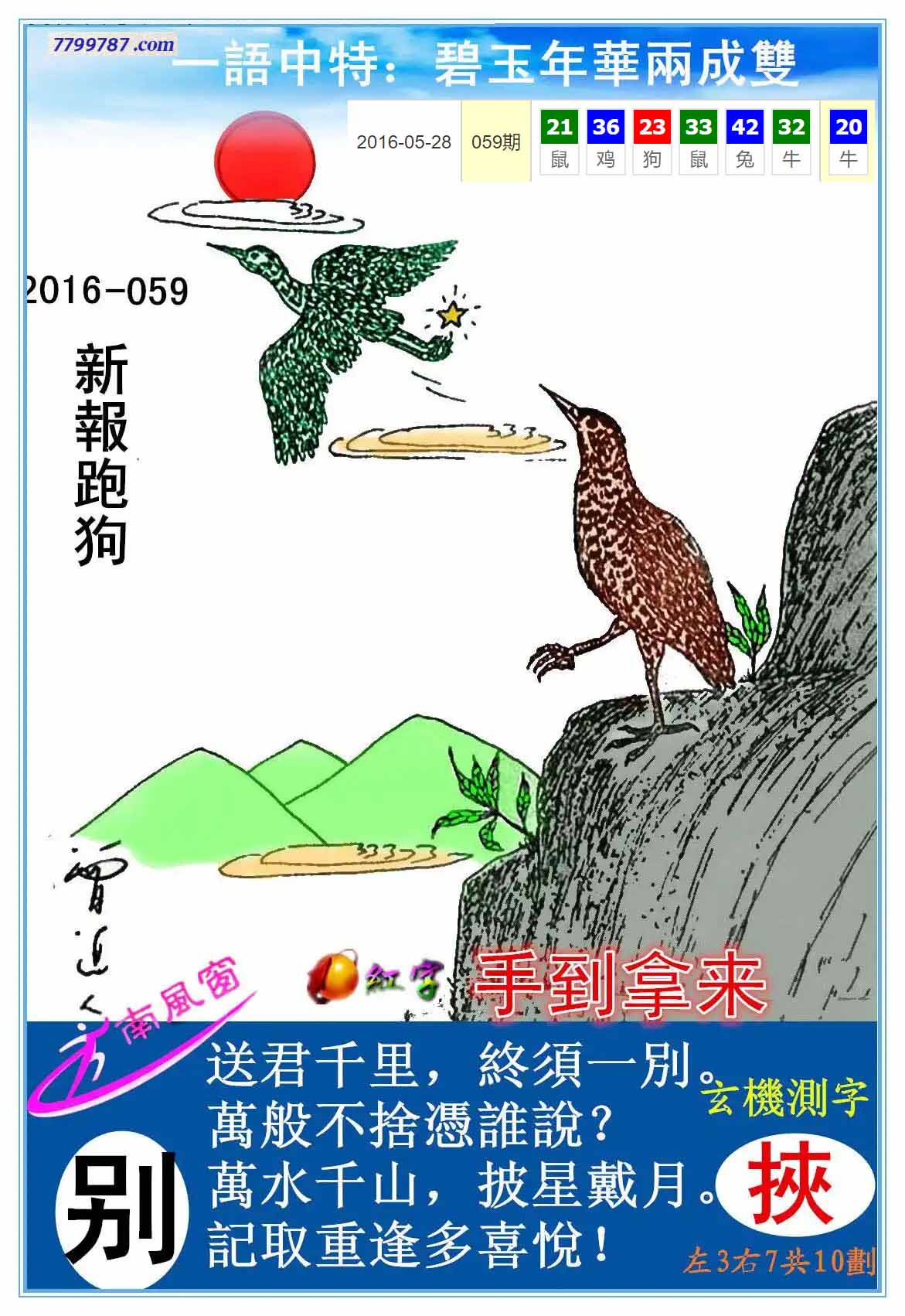 126期新版跑狗一字記之曰:【飛】