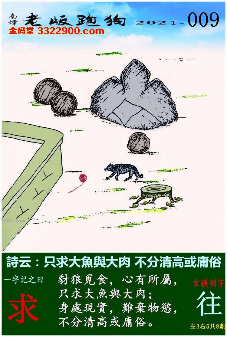 主题 : 009期老版跑狗一字記之曰:【求】玄機測字:《往》