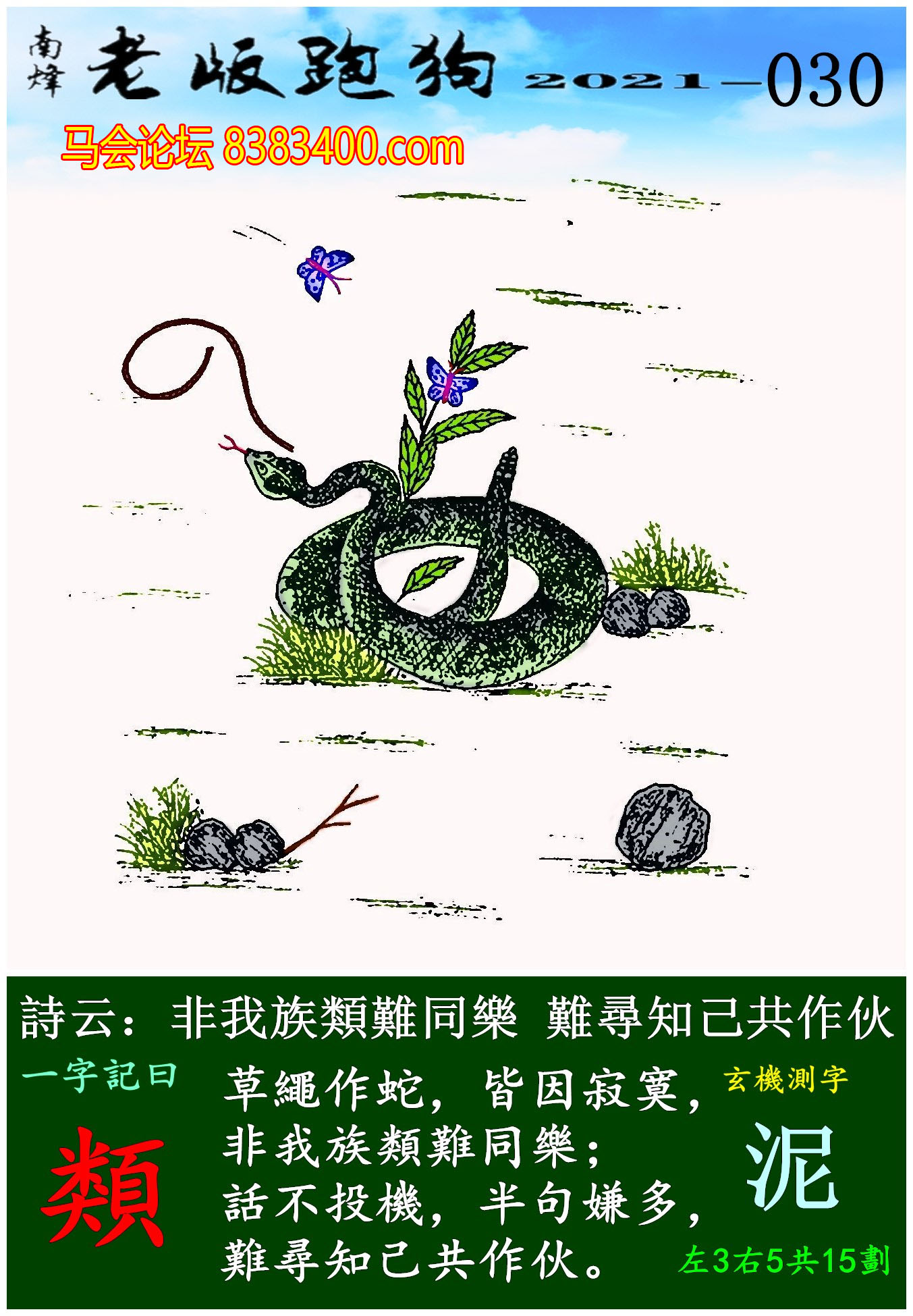 主题 : 030期老版跑狗一字記之曰:【類】玄機測字:《泥》