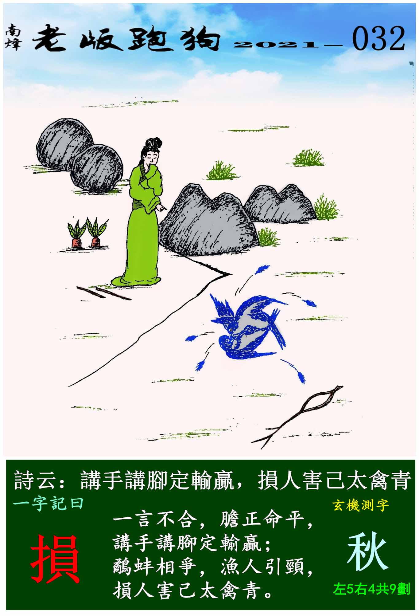032期老版跑狗一字記之曰:【損】