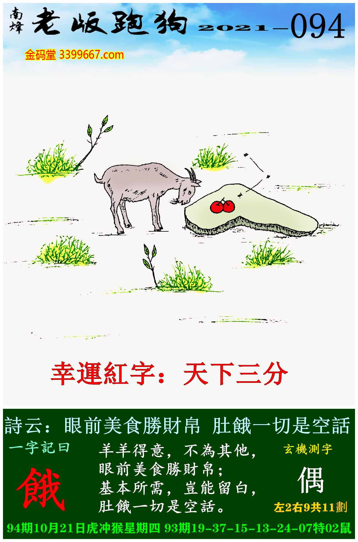 主题 : 094期老版跑狗一字記之曰:【餓】玄機測字:《偶》