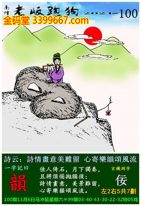 100期老版跑狗一字記之曰:【韻】玄機測字:《佞》