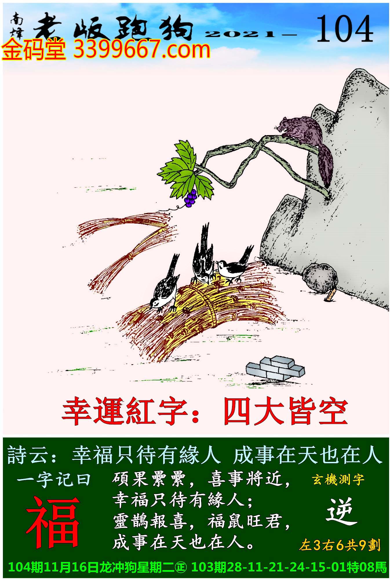 104期老版跑狗一字記之曰:【福】玄機測字:《逆》