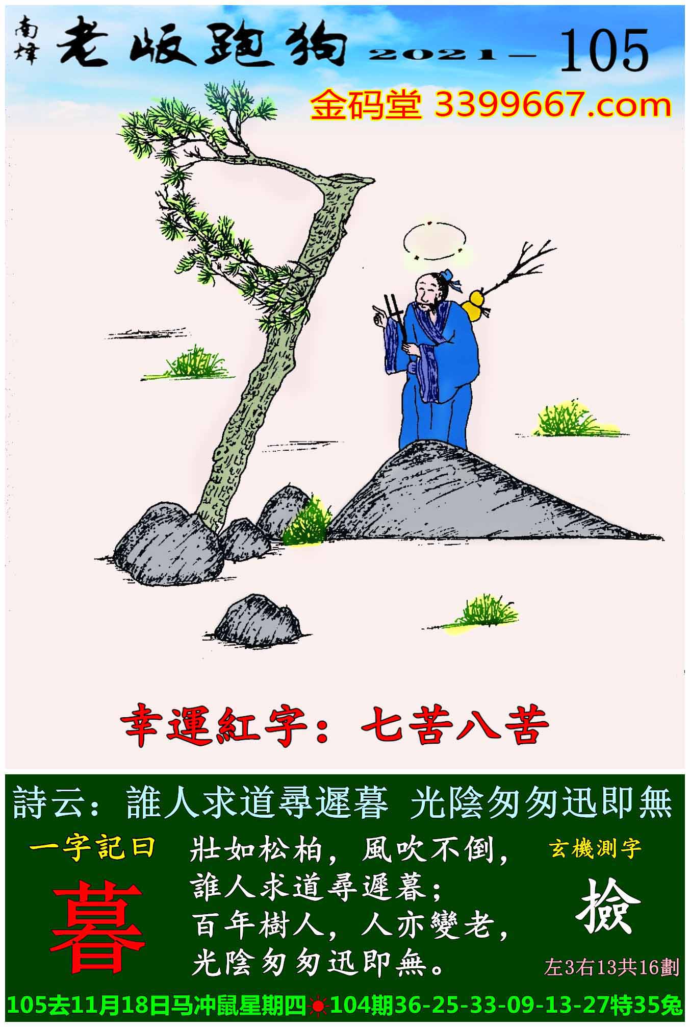 主题 : 105期老版跑狗一字記之曰:【暮】玄機測字:《撿》