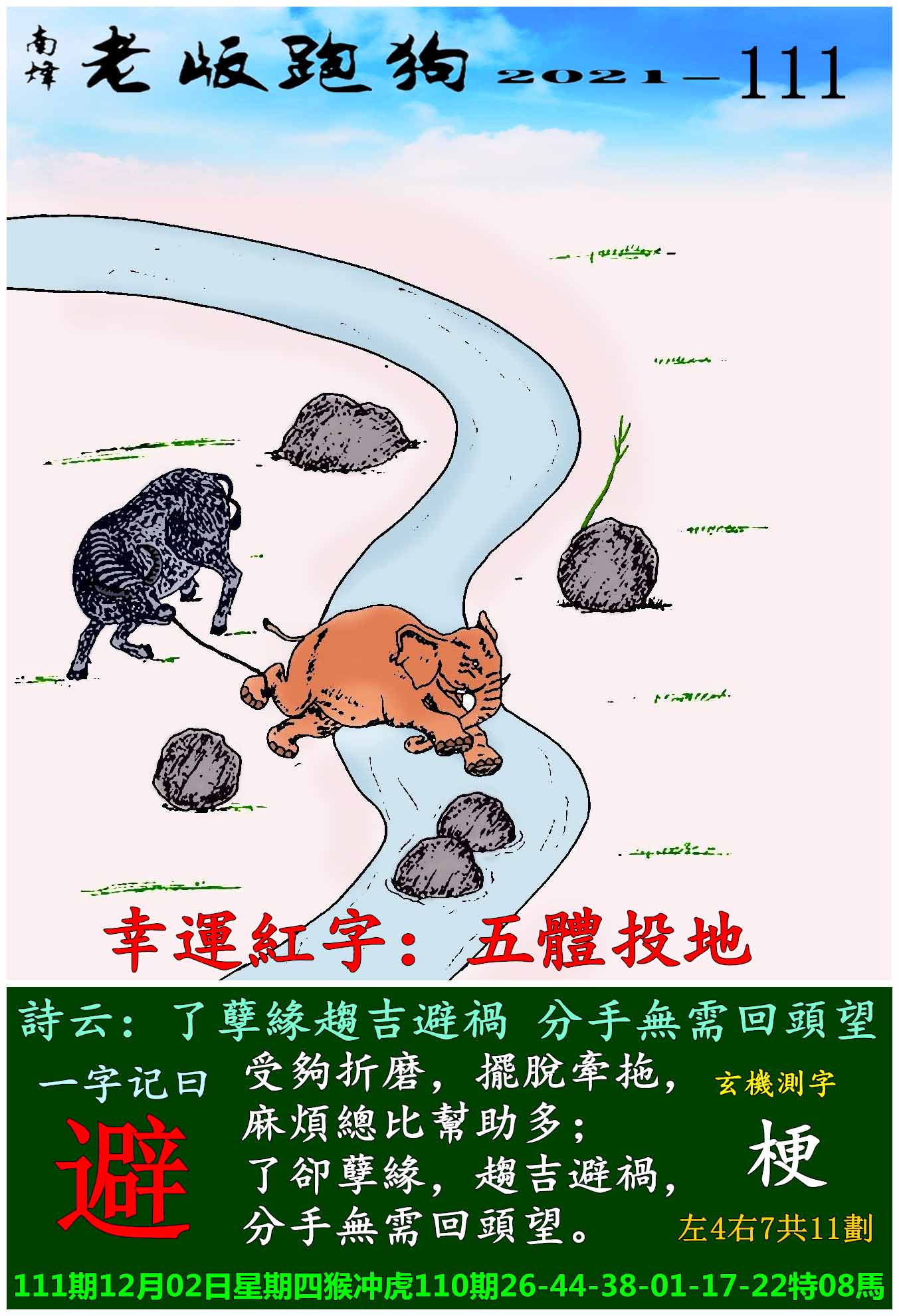 111期老版跑狗一字記之曰:【避】