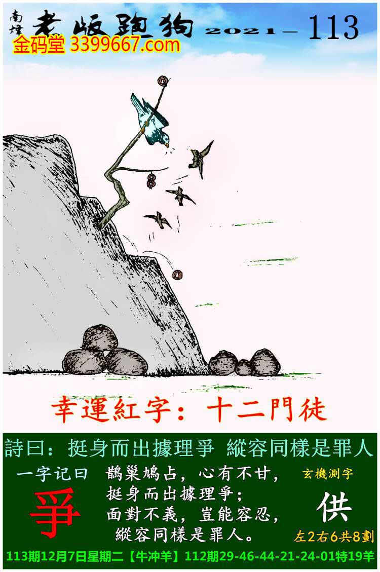 主题 : 113期老版跑狗一字記之曰:【争】玄機測字:《供》